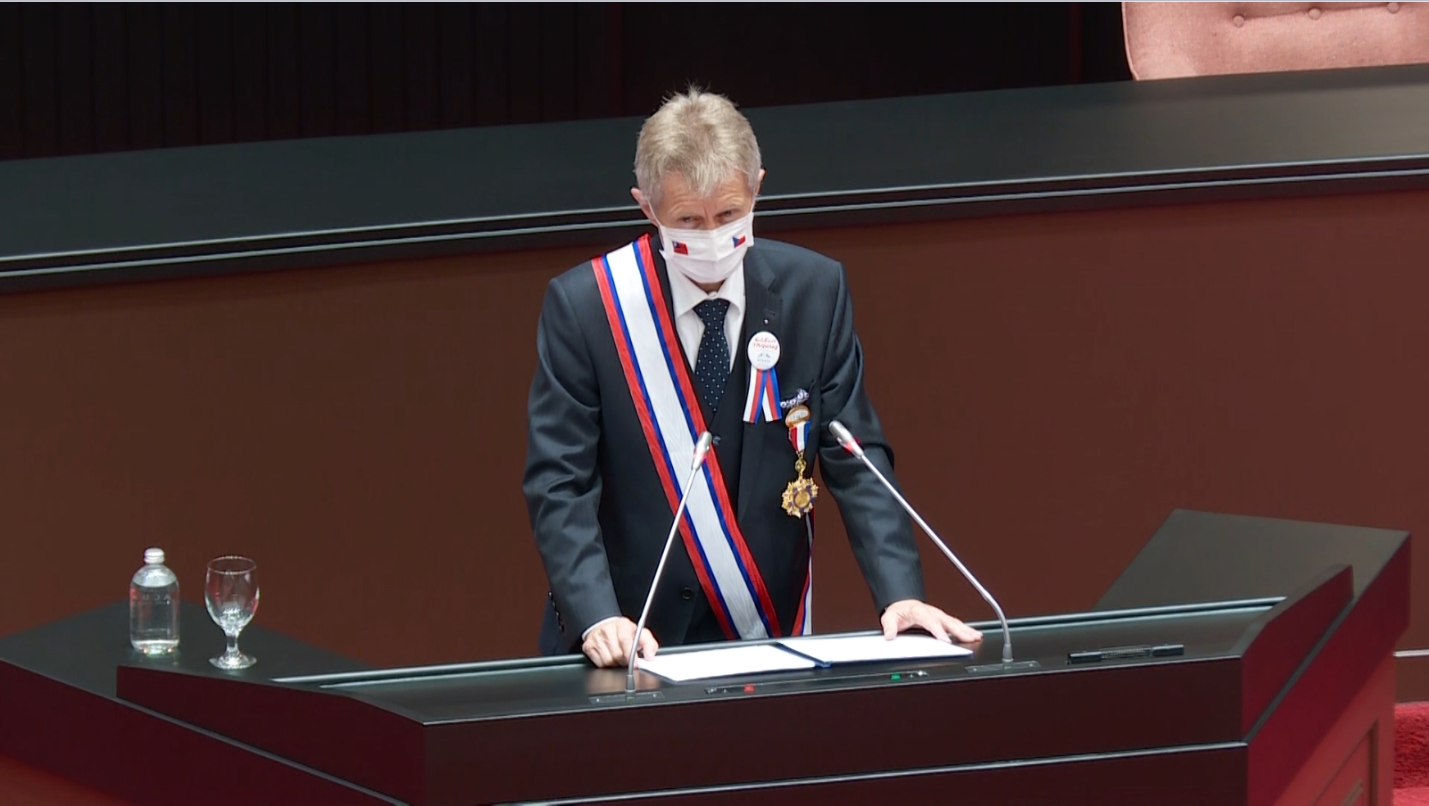 捷克參議院議長韋德齊表示,感謝立法院頒授國會外交一等榮譽獎章給他,並深感責任重大。他說,捷克與台灣兩個國家的命運很相似,都為追求自由民主的生活需要作出努力,他也在昨天政大演講中倡議民主國家團結,捍衛共同價值。