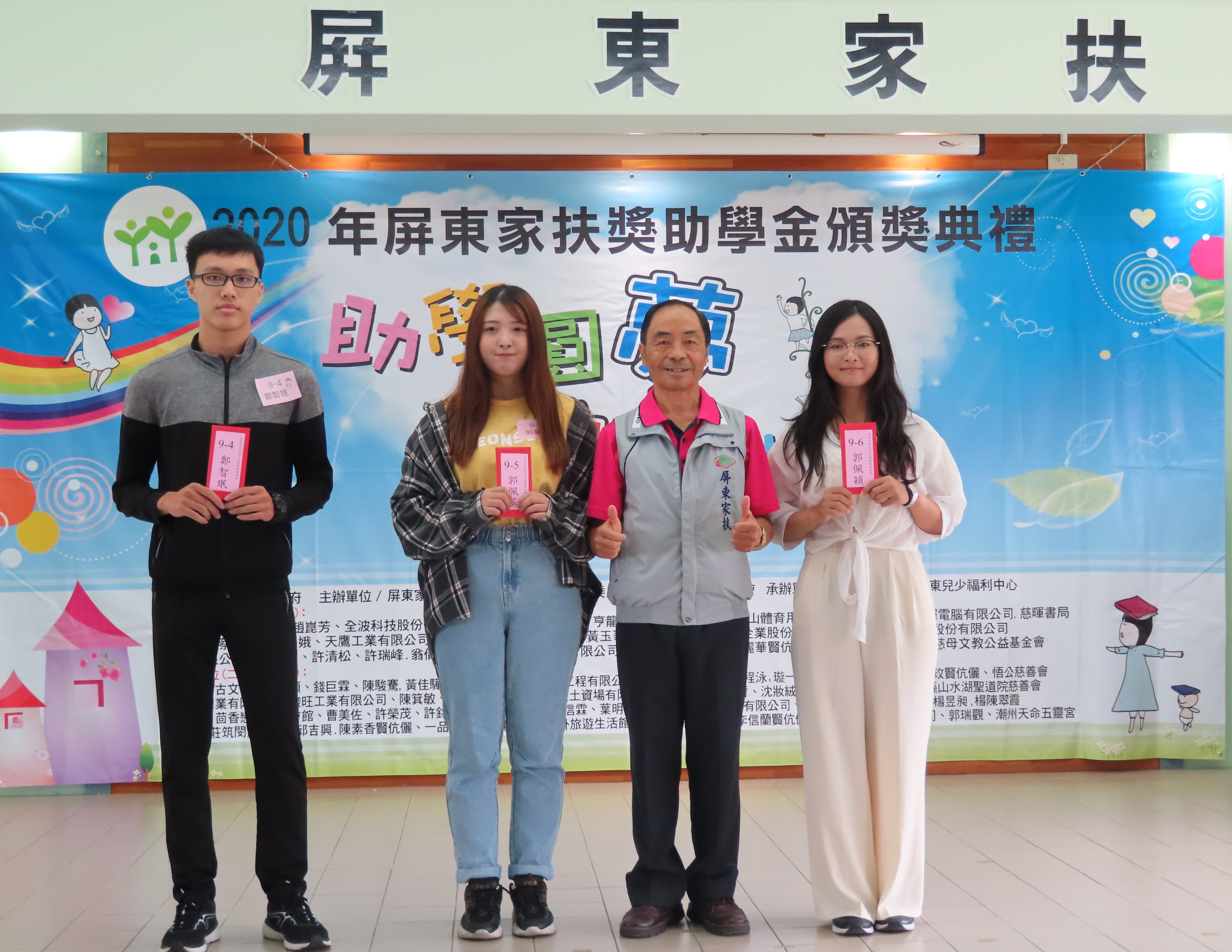 屏東家扶中心主委林新安(右2)頒發2020年獎助學金。(圖/屏東家扶中心提供)