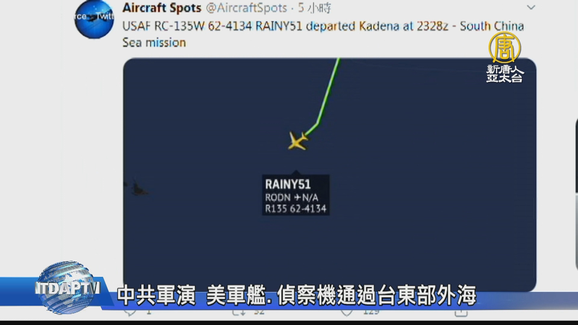 【新唐人亞太台 2020 年 09 月 08 日訊】再來關心,美中軍事角力。中共宣布在渤海、黃海進行軍事演習,美國海軍學院在網站公布美國海軍所屬的「輕航母」美利堅號兩棲突擊艦,7日在台灣東部外海,由南往北航行,挺台意味十分濃厚。另外,據時常分享各國軍機動態的推特顯示,美國陸軍一架「挑戰者650」偵察機今天上午從日本起飛後,沿著台灣防空識別區北部往東海再轉向黃海方向飛行,直接對中共演習進行偵搜。稍後美軍還派出一架RC-135W電偵機經由台灣東部往南海飛行。