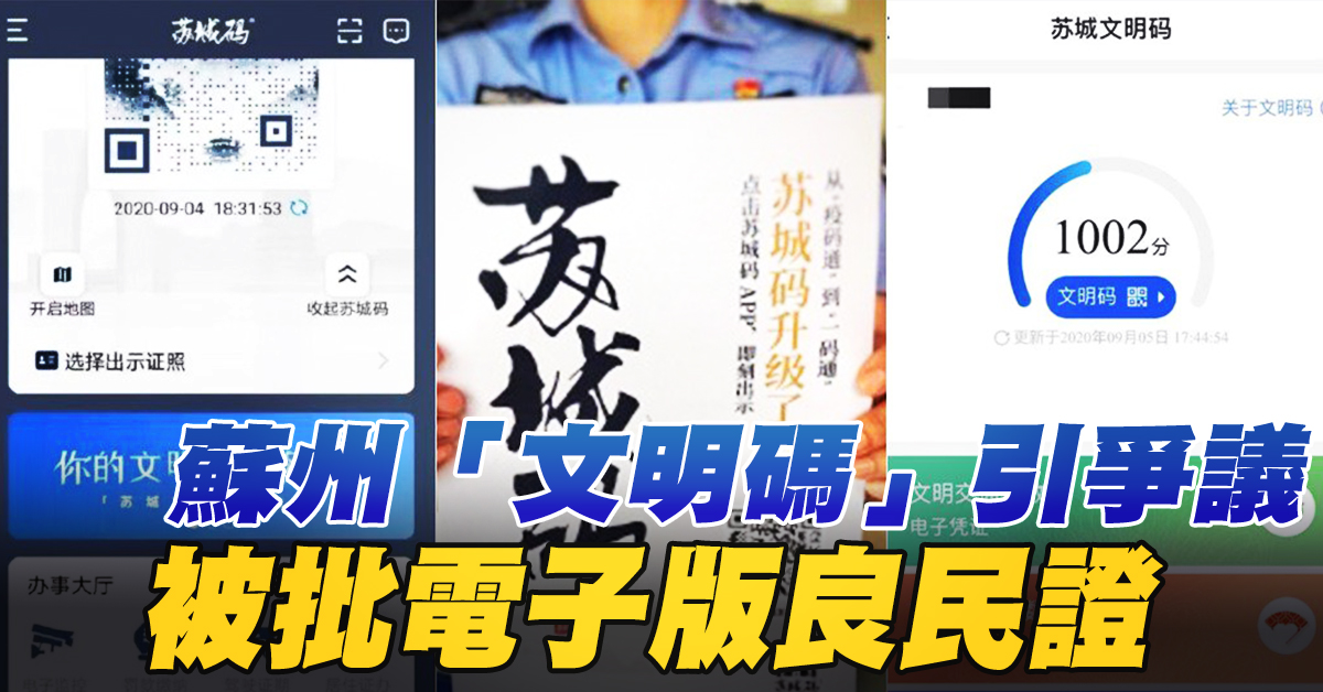今年中國爆發中共肺炎疫情後推出「健康碼」,個人行蹤受到監控引發疑慮,因此蘇州官方再推出「蘇城文明碼」,同樣引發爭議。
