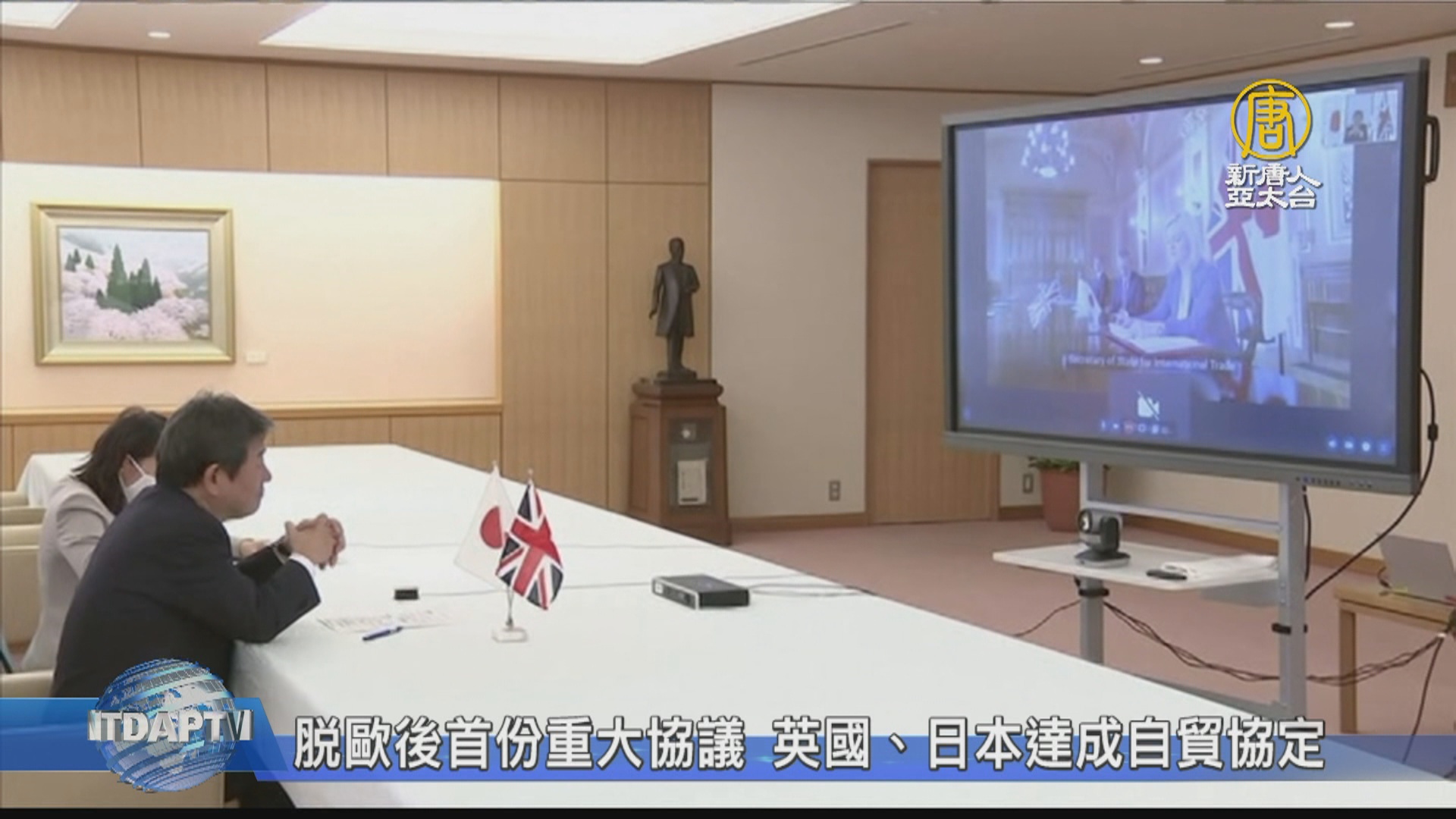 【新唐人亞太台 2020 年 09 月 11 日訊】歡迎回來,新聞首先來看到,英國與日本今天宣布,達成自由貿易協定,雙方在日本時間今天下午4點舉行視訊會議,日英貿易協定,還需經由正式簽署與兩國議會同意,目標是要在明年1月生效。而這也是英國1月脫歐後第一項重要貿易協議,將可避免英國脫歐後,英日兩國關稅升高了進出口商品成本。英國貿易部表示,未來英國出口至日本的貨物,99%都將免關稅,並估計,與日本貿易額,將因此增加約195億美元。並強調,這是英國朝向加入「跨太平洋夥伴協定」TPP邁進的「重要一步」。