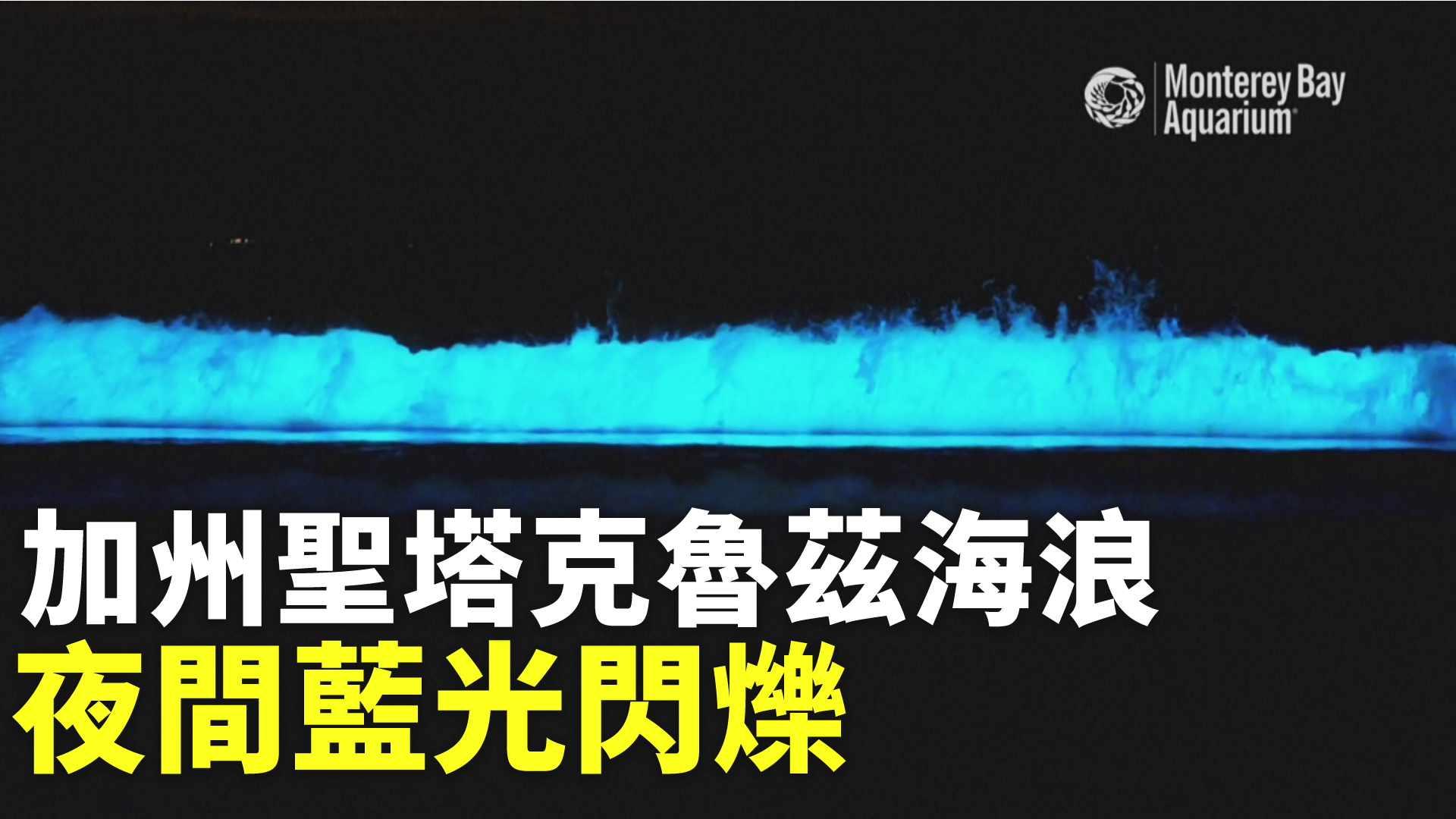 【新唐人亞太台 2020 年 09 月 12 日訊】最近,北加州的聖塔克魯茲縣海岸線上出現奇特景象,在阿普托斯(Aptos)的州立海崖海灘(Seacliff State Beach)上,涌向海岸的海浪在黑暗中閃爍著美麗的藍光。