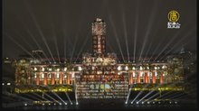 2021-10-04 22:19:37雙十國慶活動之一「國慶光雕」將於明晚登場,文總今晚在總統府前進行彩排測試,以「百年追求.世界台灣」為主題的光雕展演畫面也首度亮相。