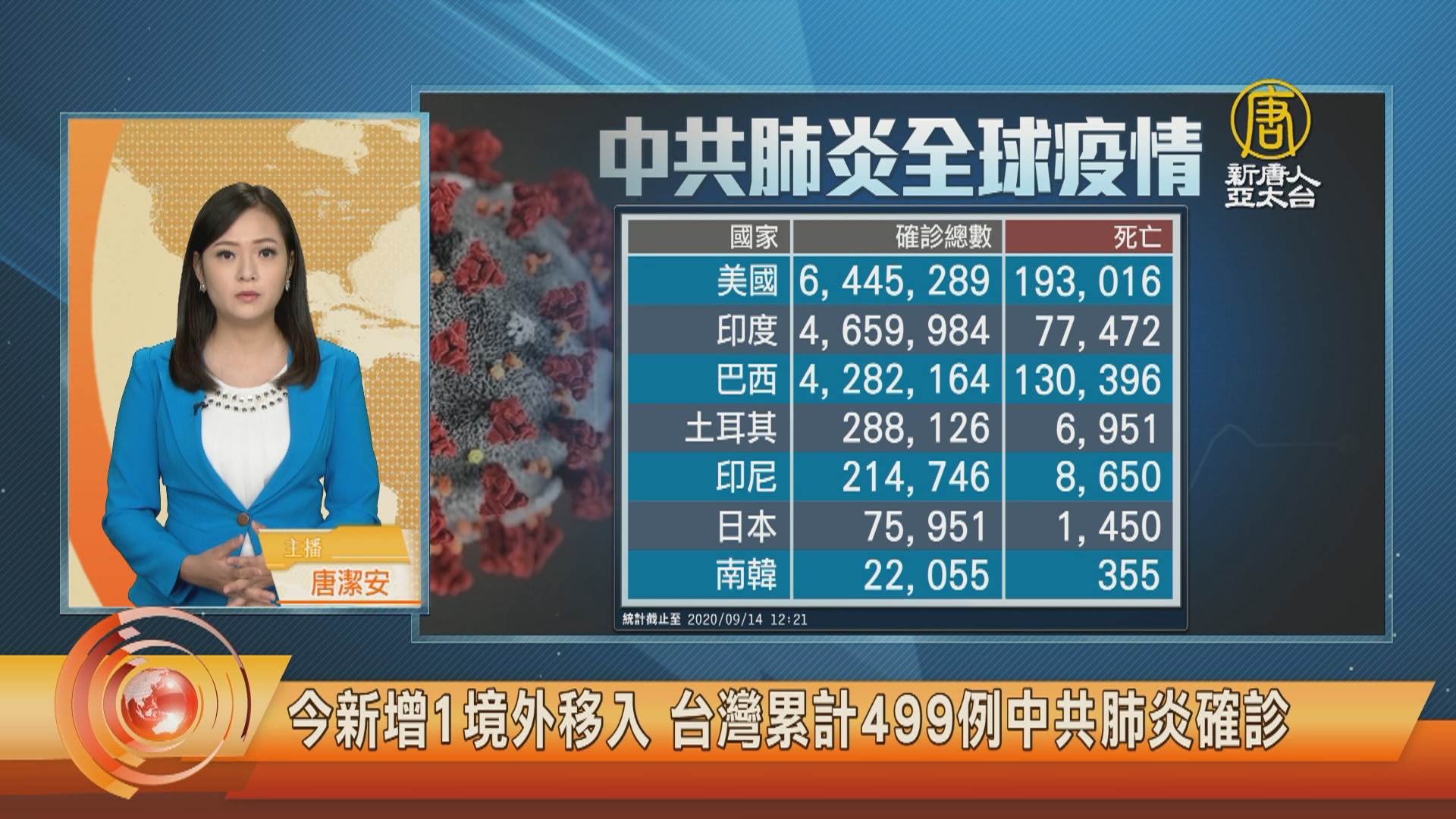 【新唐人亞太台 2020 年 09 月 14 日訊】午報頭條先來關心,台灣今天再新增1例中共肺炎確診,指揮中心發言人,預計下午兩點召開臨時記者會說明,目前台灣累計有499例確診,包含407例境外移入病例,55例本土病例,36例敦睦艦隊及1例不明,其中有7人死亡。