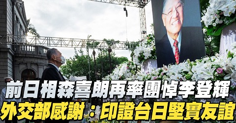 【新唐人亞太台 2020 年 09 月 17 日訊】日本前首相森喜朗將於18日再度率團搭乘專機抵台,出席19日故前總統李登輝的告別追思禮拜。森前首相前已率團於上(8)月9日到台北賓館弔唁李前總統,此次再度不辭辛勞,專程率團來台祭悼,顯示日方對李前總統及台日關係的高度重視,外交部表示誠摯歡迎及感謝。