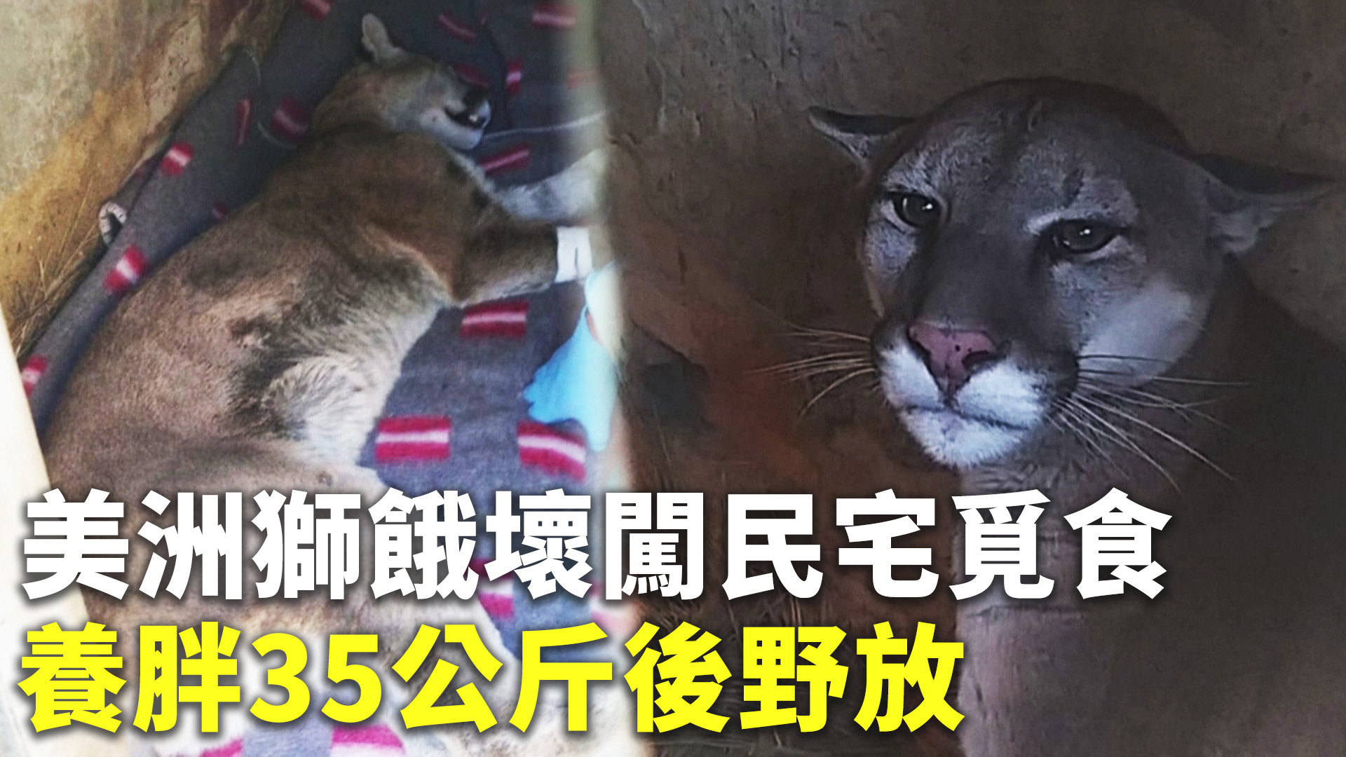 美洲獅餓壞闖民宅覓食 養胖35公斤後野放