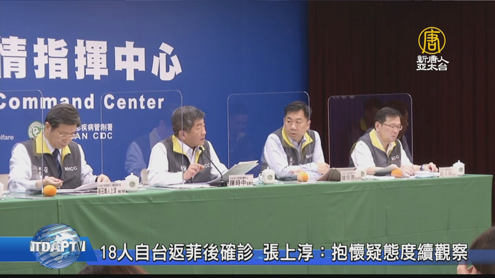 中央流行疫情指揮中心指揮官 陳時中:「總共有18名的菲律賓籍的民眾,及一名日本籍的民眾,自我國返回母國的時候,檢驗出中共病毒的肺炎的陽性。」