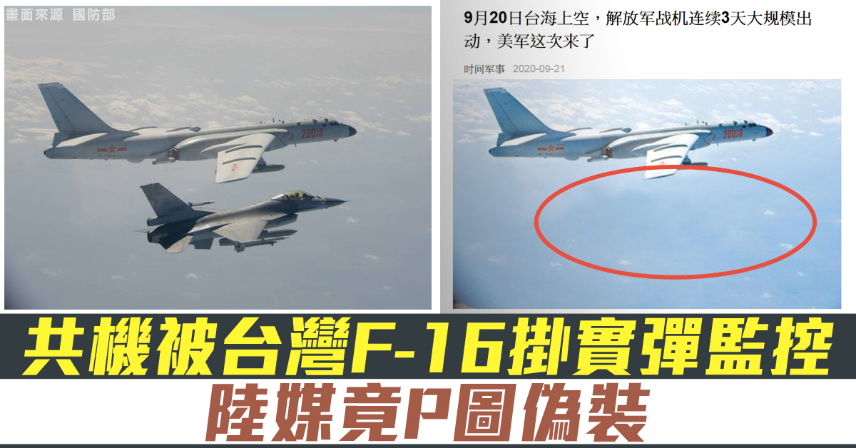 共機被台灣F-16掛實彈監控 竟遭陸媒P圖