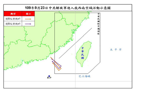 國防部在23日晚間公布,2架運8反潛機侵入台灣西南空域的防空識別區內(ADIZ),我國空軍派遣空中巡邏及緊急起飛等兵力應對、廣播驅離,以及防空飛彈追監。