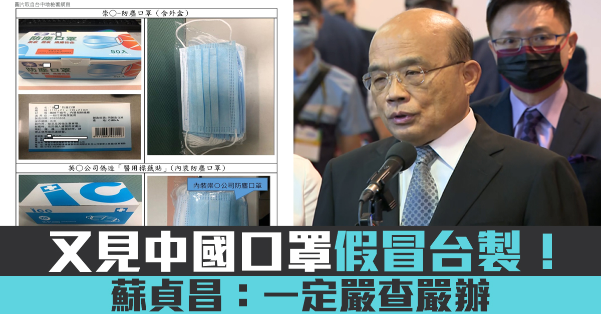又見國家隊出包.中國口罩假冒台製!蘇揆要嚴辦