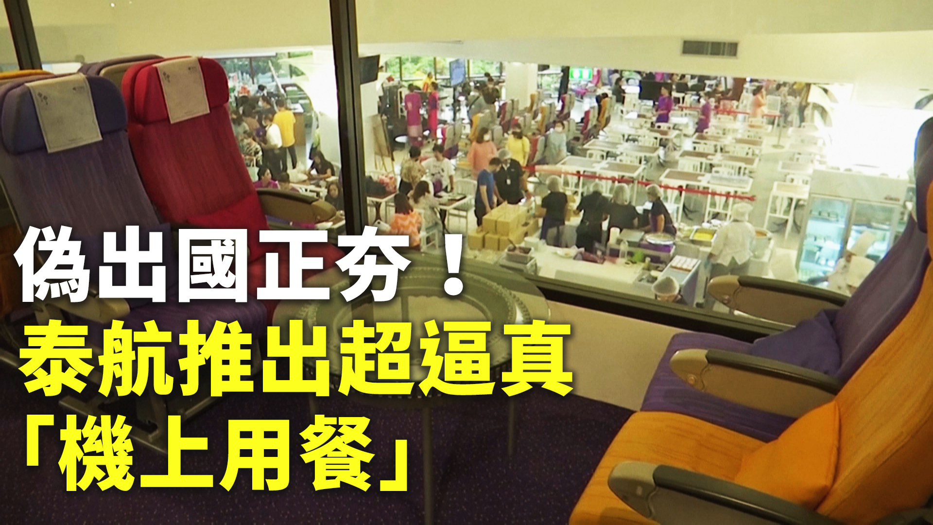 【新唐人亞太台 2020 年 09 月 25 日訊】受到中共肺炎影響,出國航班大幅減少,許多航空業者為因應現況,推出了「偽出國」行程。泰國航空公司也看準其中商機,將公司總部的員工餐廳,改裝成以飛機客艙為主題的「機艙餐廳」。