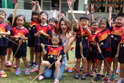 【新唐人亞太台 2020 年 09 月 25 日訊】經濟部加工出口區管理處邀請名模瑞莎來到楠梓示範幼兒園擔任一日園長,帶領孩子進行韻律體操彩帶初體驗。楠梓示範幼兒園設立迄今20多年,為國內少數為產業園區特設的幼兒園,協助解決楠梓園區從業員工子女托育需求。瑞莎一踏入校園,驚艷占地2000多坪的寬廣校園,直讚:「這環境太棒了!」。