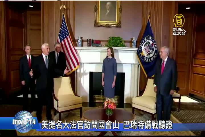 【新唐人亞太台 2020 年 09 月 30 日訊】巴瑞特上週六接受川普總統提名出任最高法院大法官,週二來到國會山莊,與參議院領袖麥康奈,及共和黨參議員會談,為即將舉行的人事確認聽證做準備。不過多位民主黨籍參議員,拒絕在聽證會之前,與巴瑞特見面。