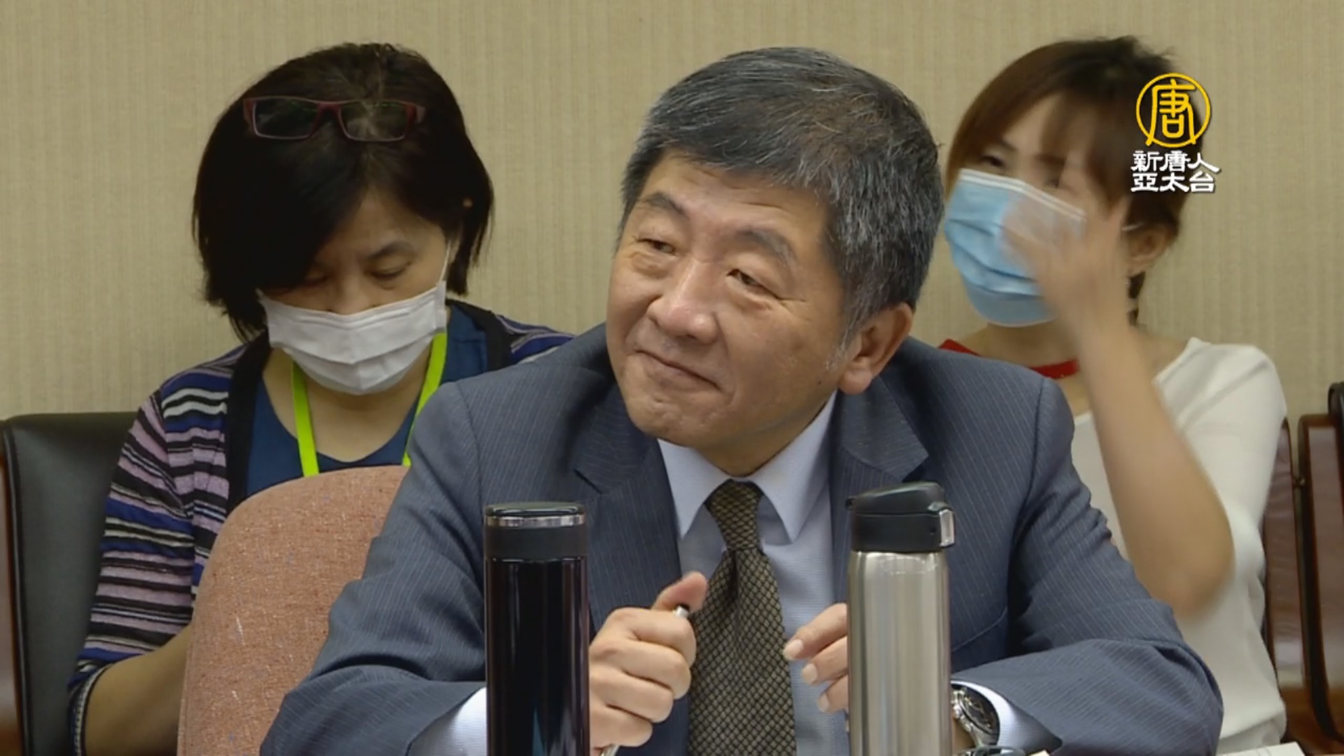 【新唐人亞太台 2020 年 09 月 30 日訊】衛福部長陳時中和國民黨立委蔣萬安,再度在立院交手,討論美豬開放後,學童的營養午餐如何把關,被視為下屆台北市長熱門人選的兩人,互相稱讚對方表現好。不過近來傳出,台北市長柯文哲想找蔣萬安吃飯,似乎有藍白合的結盟態勢,陳時中被問到會不會找盟友時,趕緊回答現在沒時間想這件事。