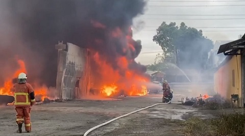 伸港鐵皮工廠大火 彰化消防局出動27車搶救