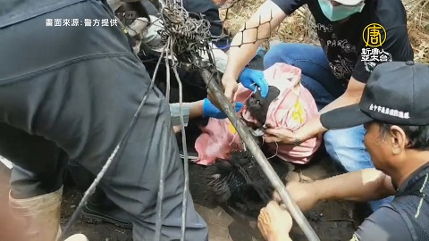 【新唐人亞太台 2020 年 10 月 01 日訊】台中市和平區曾姓果農位於東卯山下的甜柿園,因去年慘遭山豬破壞造成損失設置陷阱捕捉,結果今天清晨意外抓到1隻台灣黑熊,因黑熊左前肢被俗稱「山豬吊」的鋼索困住,林務局獲報,偕同警方、農委會特有保育中心、屏東科技大學人員及獸醫趕到現場救援,台灣黑熊終於脫困獲救。