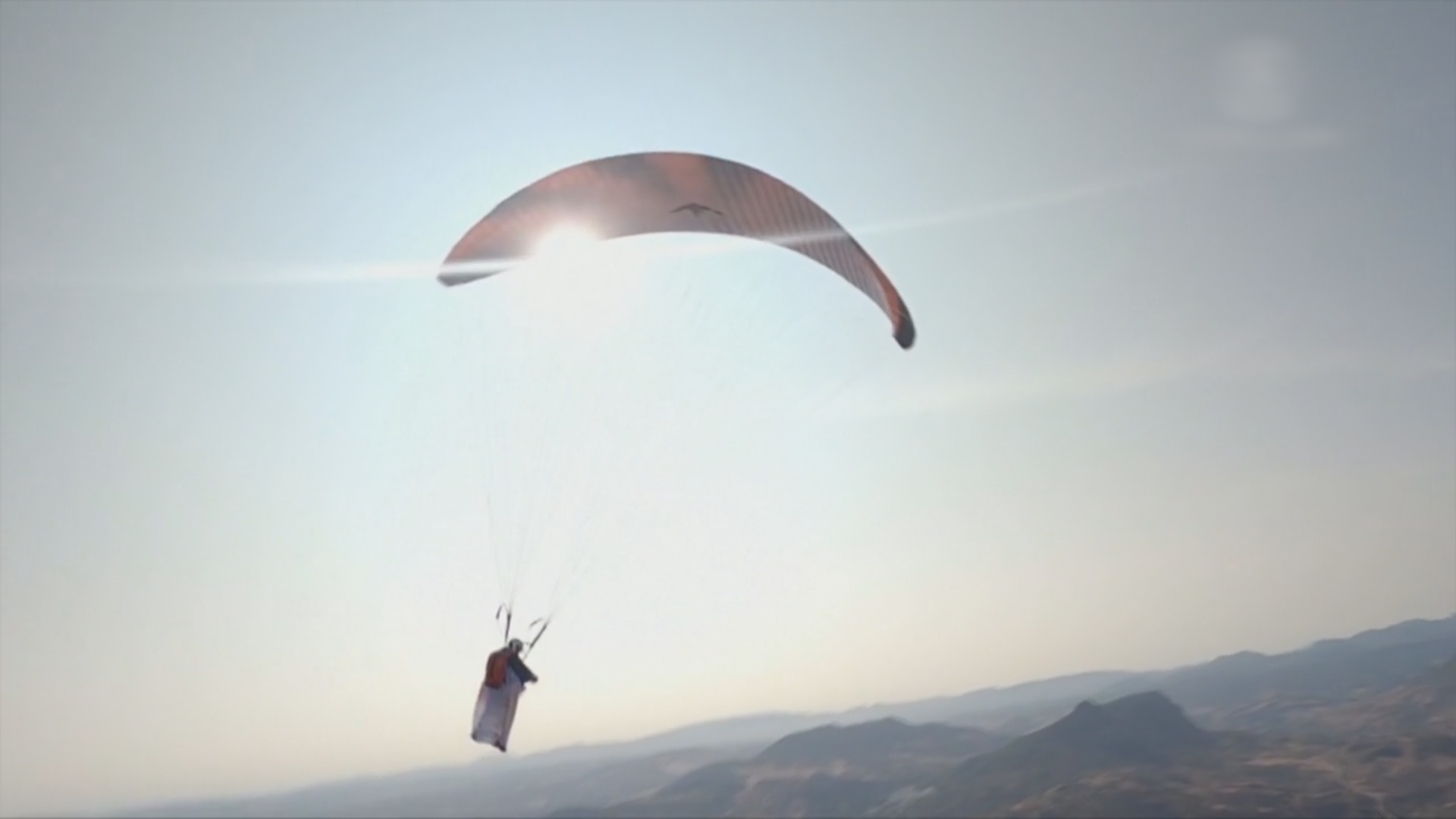 特吉羅從動力傘一躍而下,滑翔傘瞬間撐開,短暫顛簸後,特吉羅在空中進入平穩飛翔狀態,特吉羅趁機將滑翔翼裝拉索拉好,甩掉滑翔傘,轉而進入翼裝飛行。