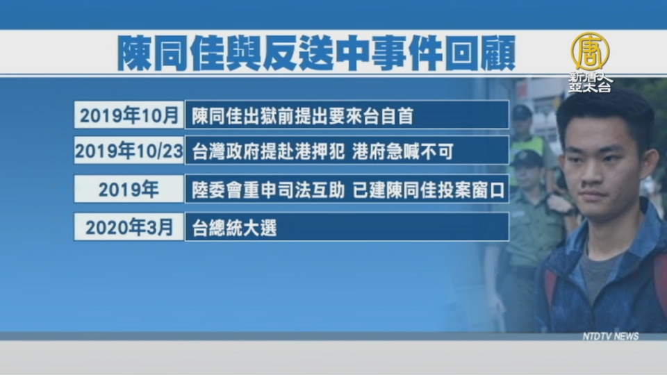 【新唐人亞太台 2020 年 10 月 02 日訊】陳同佳案,成為港府逃犯條例修正的導火線也引發港人的反送中運動,帶您回顧事件,[切]2018年2月陳同佳在台灣殺害港籍女友。3月至7月,台灣政府三度向港府提司法互助要求,港府沒有理會。12月,台灣政府發出通緝令。隔年2月,港府提出了《逃犯條例》修訂,後來釀成反送中運動。2019年10月 陳同佳出獄前提出要來台自首。 2019年10月23日,台灣政府提出要赴港押犯,但港府急喊不可。後來,陸委會重申司法互助,表示已建立陳同佳投案窗口。但後來,港府持續擱置進度。同時推進送中條例,港人抗共行動高漲,也影響了2020年1月的台灣總統大選。