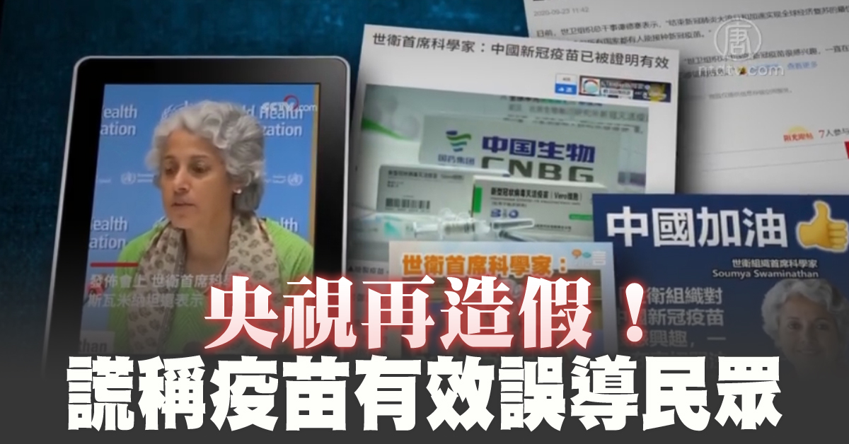 對此,中共喉舌媒體大肆宣傳,聲稱世衛首席科學家說:中國一些新冠疫苗已被證明有效。電視、報紙、社交媒體平臺不斷轉發這條新聞。