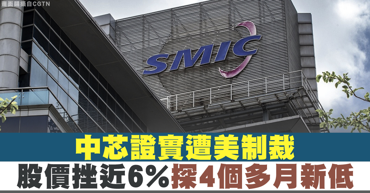 中芯證實遭美制裁 股價挫近6%.探4個多月新低