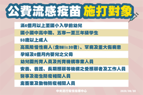 建議高風險及高傳播族群,應於10月流感疫苗開打後,儘早接種疫苗,讓整個流感季均有疫苗保護力。
