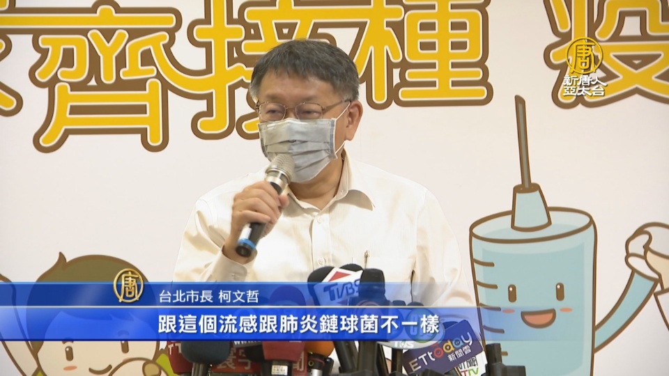 台北市長 柯文哲:「有人在問說新冠(中共)肺炎是冠狀病毒,跟這個流感跟肺炎鏈球菌不一樣,我要跟大家講,這個有打還是有差,你要小心禍不單行。」