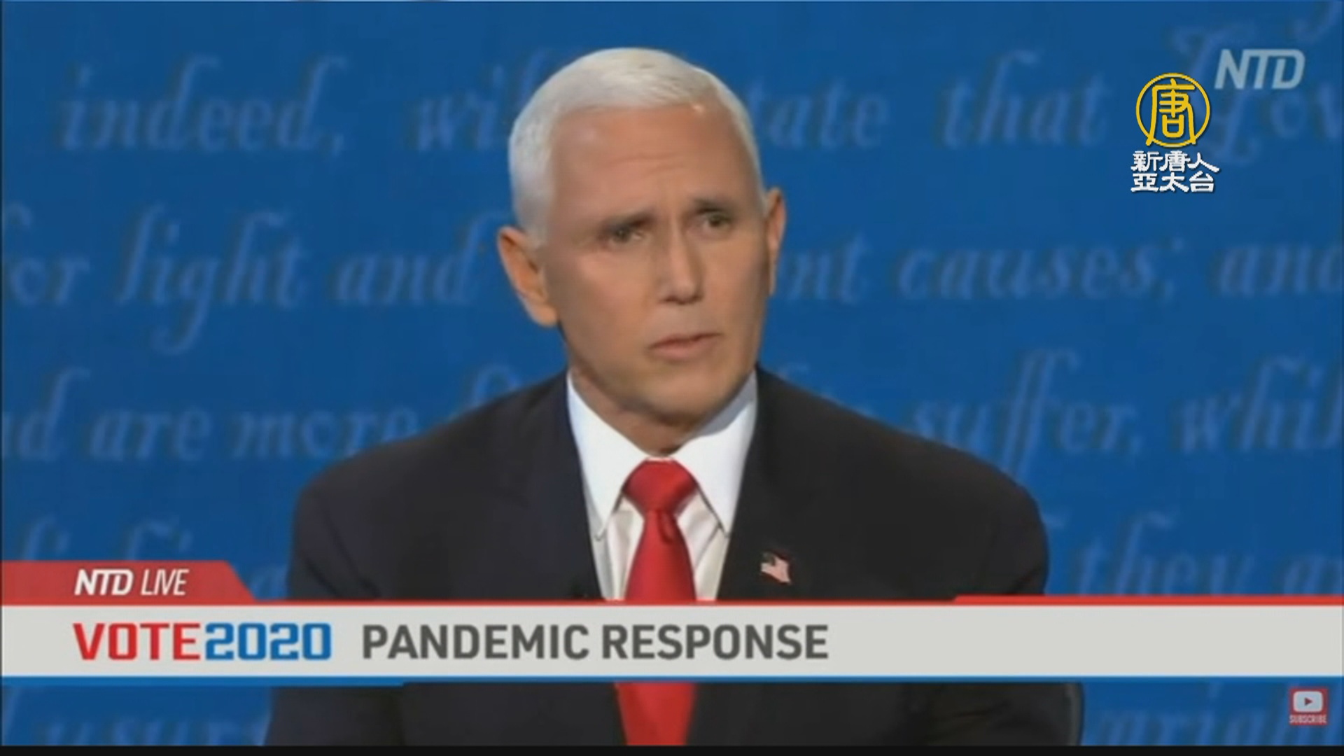 【新唐人亞太台 2020 年 10 月 08 日訊】美國再25天就要進行總統大選,台北時間今天上午九點,美國副總統彭斯與民主黨副總統候選人賀錦麗,在猶他州首府「鹽湖城」,進行副總統辯論。這次辯論相較於第一次美國總統辯論,氣氛和緩許多。最一開始,雙方首先就中共肺炎議題進行攻防。