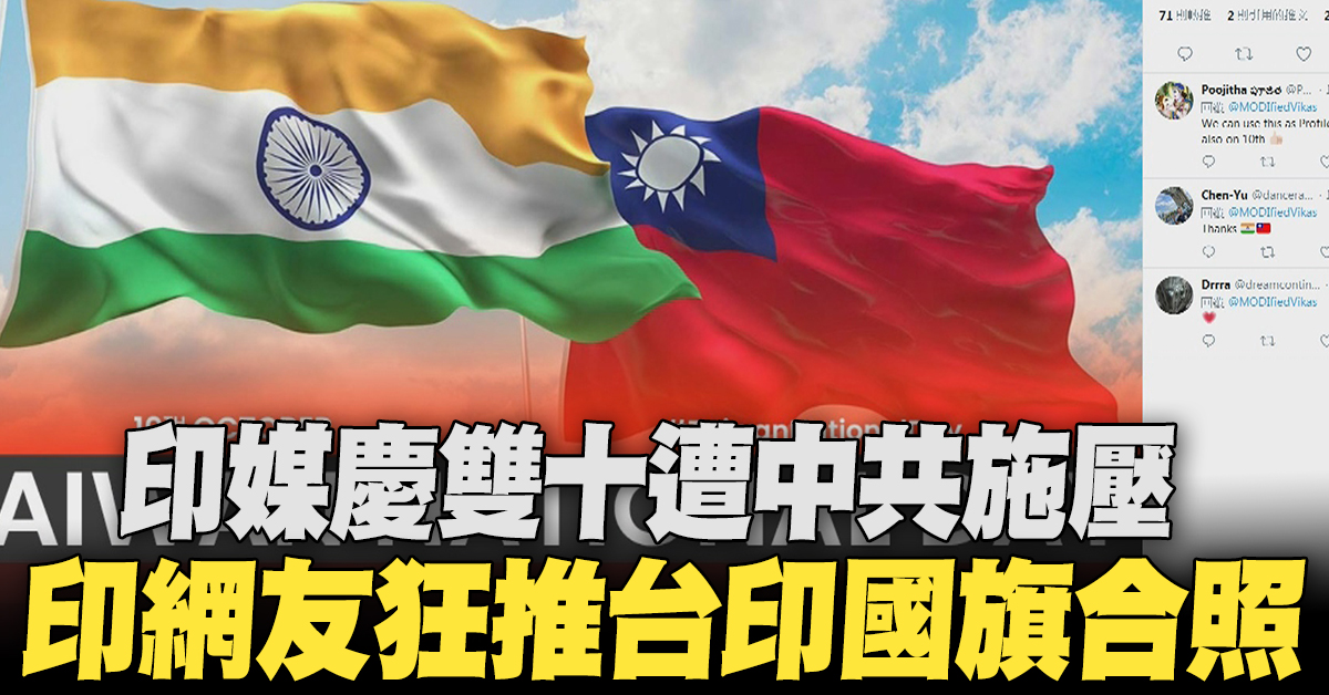 印媒慶雙十遭中共施壓 印網友狂推台印國旗合照