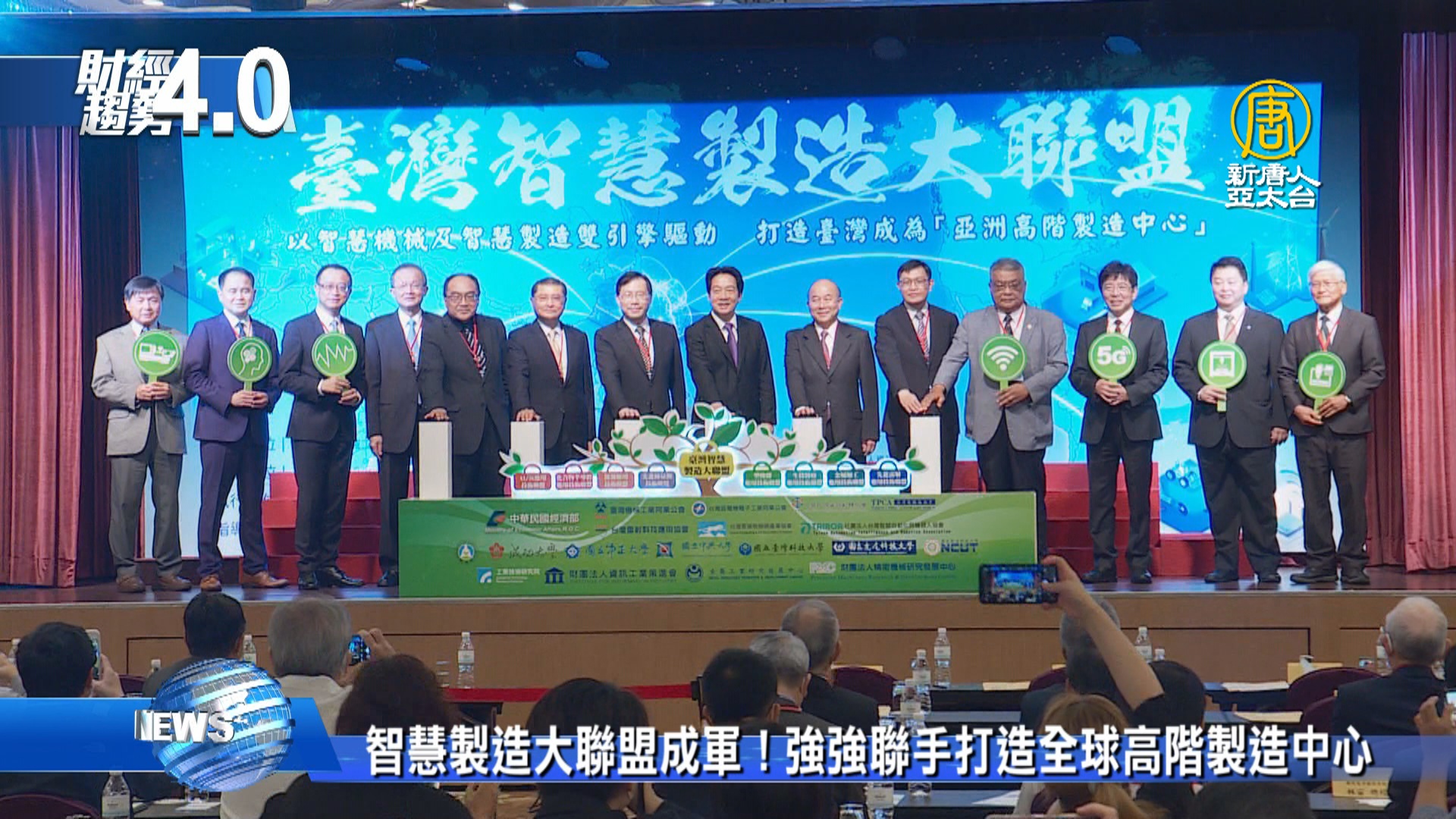 【新唐人亞太台 2020 年 10 月 10 日訊】首先來看到,為因應供應鏈重組和產業轉型需求,台灣機械公會和電電公會,本週成立台灣智慧製造大聯盟,集結產官學研力量,協助台灣設備、製造業數位轉型。機械公會表示,除了實現亞洲高階製造中心的願景,更有企圖心,讓台灣成為全球的智慧製造中心。