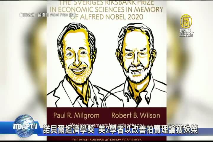 【新唐人亞太台 2020 年 10 月 12 日訊】2020年諾貝爾經濟學獎今天揭曉,由美國學者 米格羅姆 和 威爾森兩人共同獲獎,表彰他們「改善拍賣理論」。今年諾貝爾獎改為線上頒獎,獎金提高到約新台幣3200萬元。