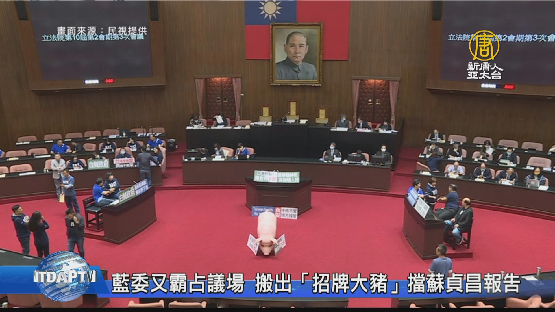 藍委又霸占議場 搬出「招牌大豬」擋蘇貞昌報告