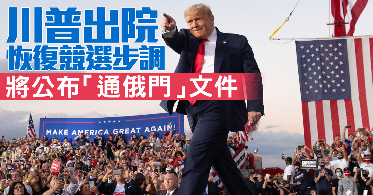【新唐人亞太台 2020 年 10 月 13 日訊】歡迎回來,再過20天就是美國總統大選。美國總統川普12號前往佛羅里達州,參加造勢大會。這是川普出院之後首次參加大型集會活動。至於外界關注是否會有「十月驚奇」,川普也透露,「通俄門」事件的相關新文件「令人震驚」,很快就會在選前解密。