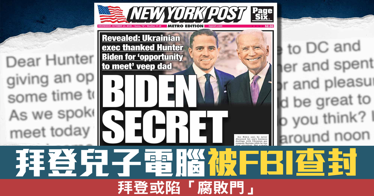 拜登兒子電腦被FBI查封 拜登或陷「腐敗門」