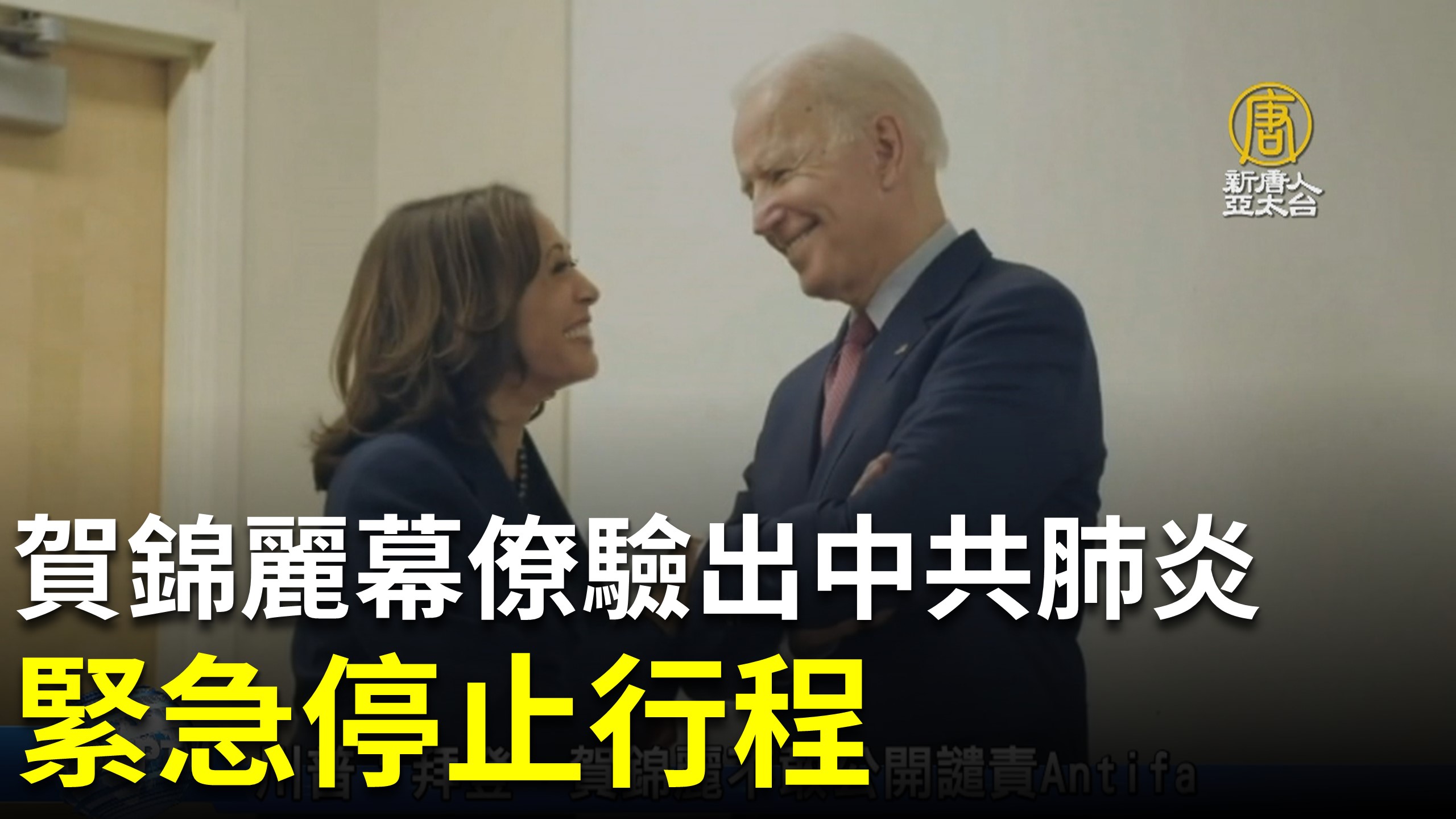 【新唐人亞太台 2020 年 10 月 15 日訊】最新消息指出,美國民主黨副總統候選人、加州聯邦參議員賀錦麗的發言體系主任艾倫(Liz Allen)和另一名編制外飛行組員被檢測出中共肺炎陽性。拜登競選陣營強調,賀錦麗與確診人士「並未有近距離接觸」,但仍會緊急停止行程。