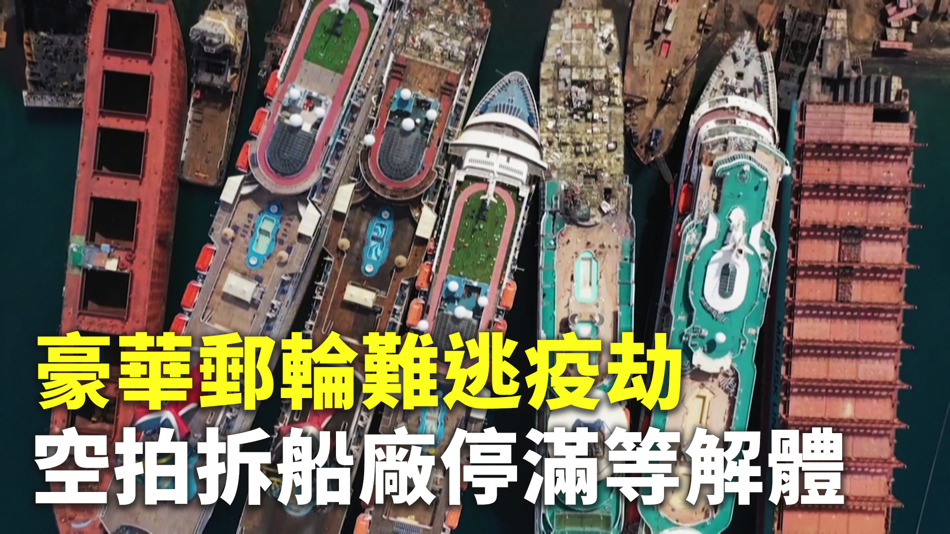 豪華郵輪難逃疫劫 空拍拆船廠停滿等解體