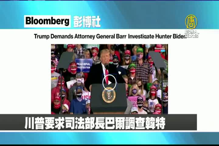 【新唐人亞太台 2020 年 10 月 21 日訊】首先來看到美國彭博社報導:美國總統川普要求司法部長巴爾調查民主黨總統候選人拜登次子韓特。