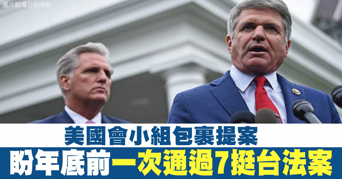 2020-10-21 07:53:56再來看到,現任美國國會任期將於明年1月期滿,為了加速通過重要法案,眾議院「中國工作小組」今天包裹137部法案,提出「中國工作小組法案」,囊括支持美台交往限制鬆綁、定期軍售及台灣國際參與等7部挺台法案。
