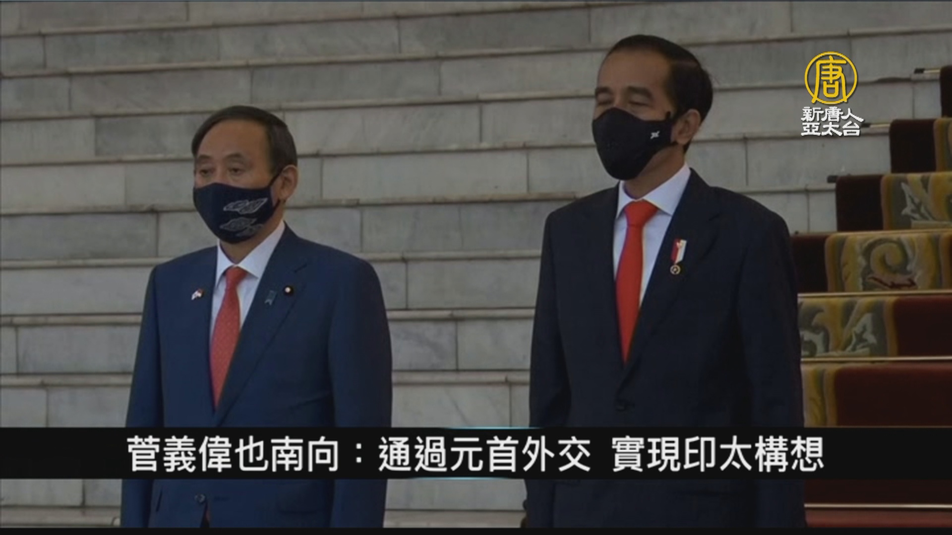 日本新任首相菅義偉,首度出訪選擇越南和印尼。21日與印尼總統佐科威會談,允諾提供印尼500億日圓的貸款,並進行經濟合作。鑑於中共在南海的擴張,印日雙方皆認為要加速磋商國防裝備品的技術轉移。菅義偉在國際記者會上說,自己將開展元首外交,與東協密切合作,致力於實現自由開放的印度太平洋構想。