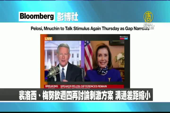 【新唐人亞太台 2020 年 10 月 22 日訊】首先來看到美國彭博社報導:裴洛西、梅努欽週四再討論刺激方案,溝通差距縮小。