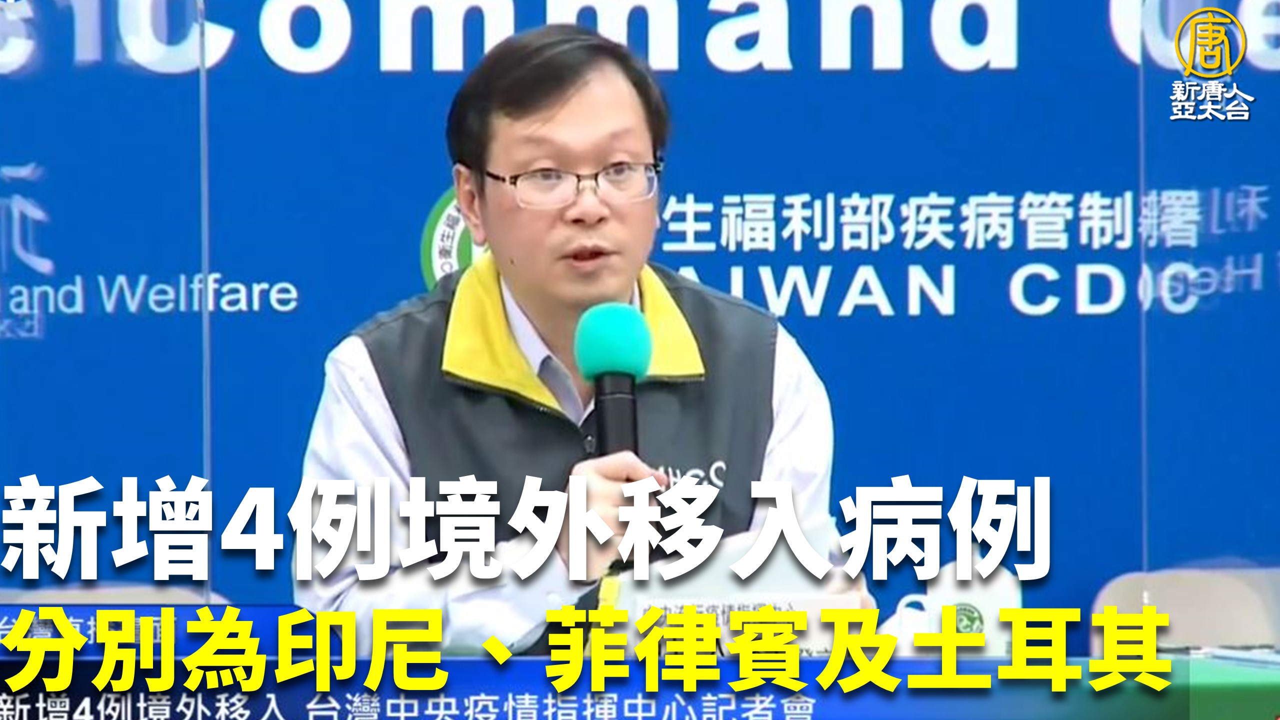新增4例境外移入病例 分別為印尼、菲律賓及土耳其
