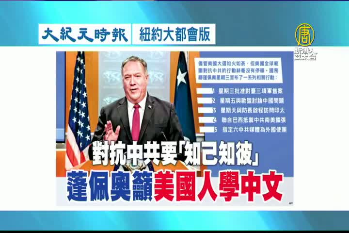 【新唐人亞太台 2020 年 10 月 23 日訊】接著看到大紀元時報紐約大都會版報導:對抗中共要「知己知彼」,美國國務卿呼籲美國人學中文。