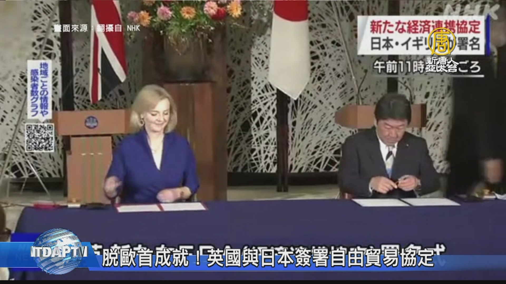 【新唐人亞太台 2020 年 10 月 23 日訊】英國與日本(23日)周五簽署了一項貿易協定,這也是英國正式脫歐後的第一個重大協議,隨著過渡期即將於12月31日結束,英國將重點放在與世界各國商議新的自由貿易協定,不過在此同時,英國與歐盟的脫歐協議談判,仍在持續當中。