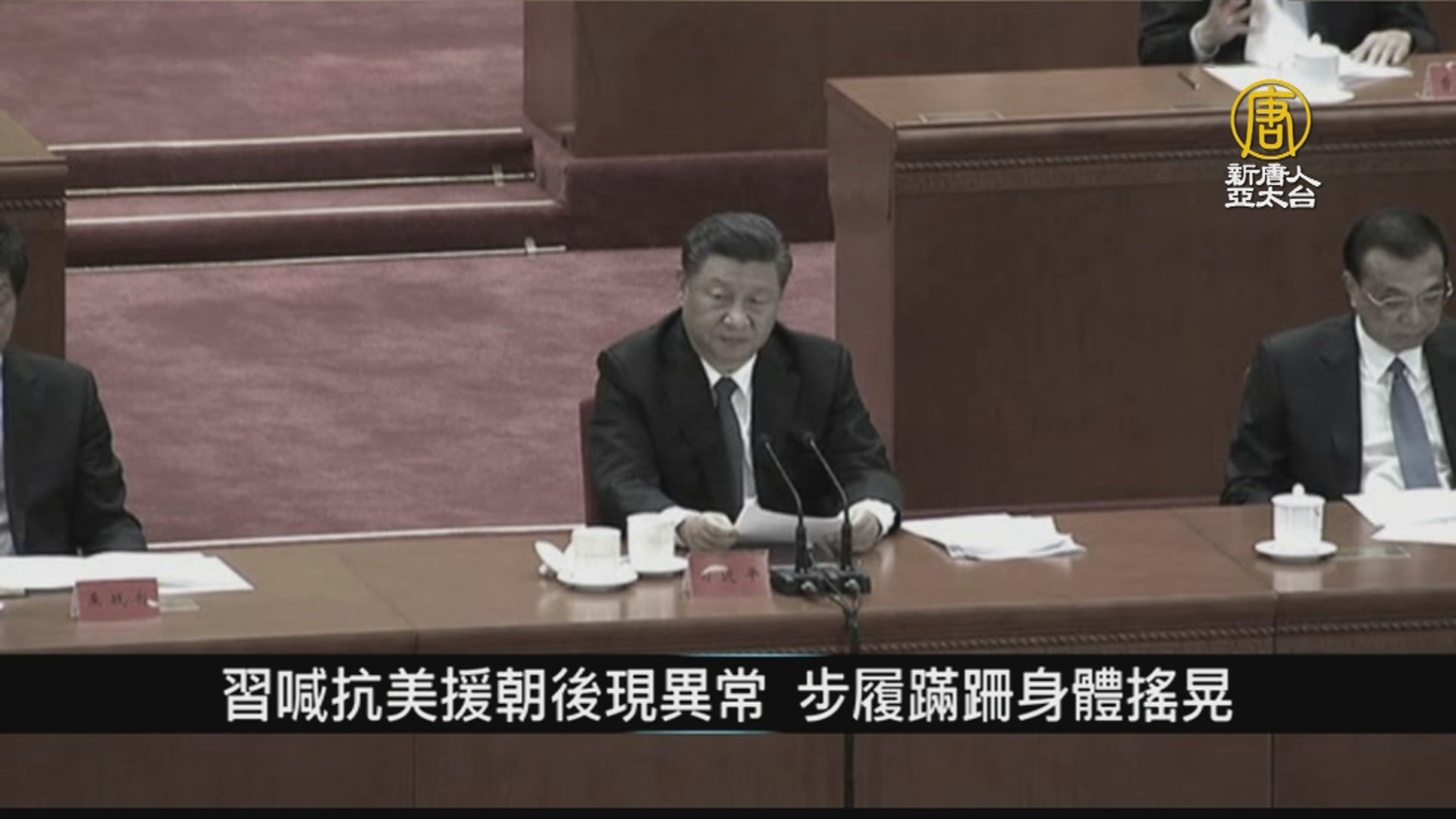 【新唐人亞太台 2020 年 10 月 24 日訊】習喊抗美援朝後現異常 步履蹣跚身體搖晃