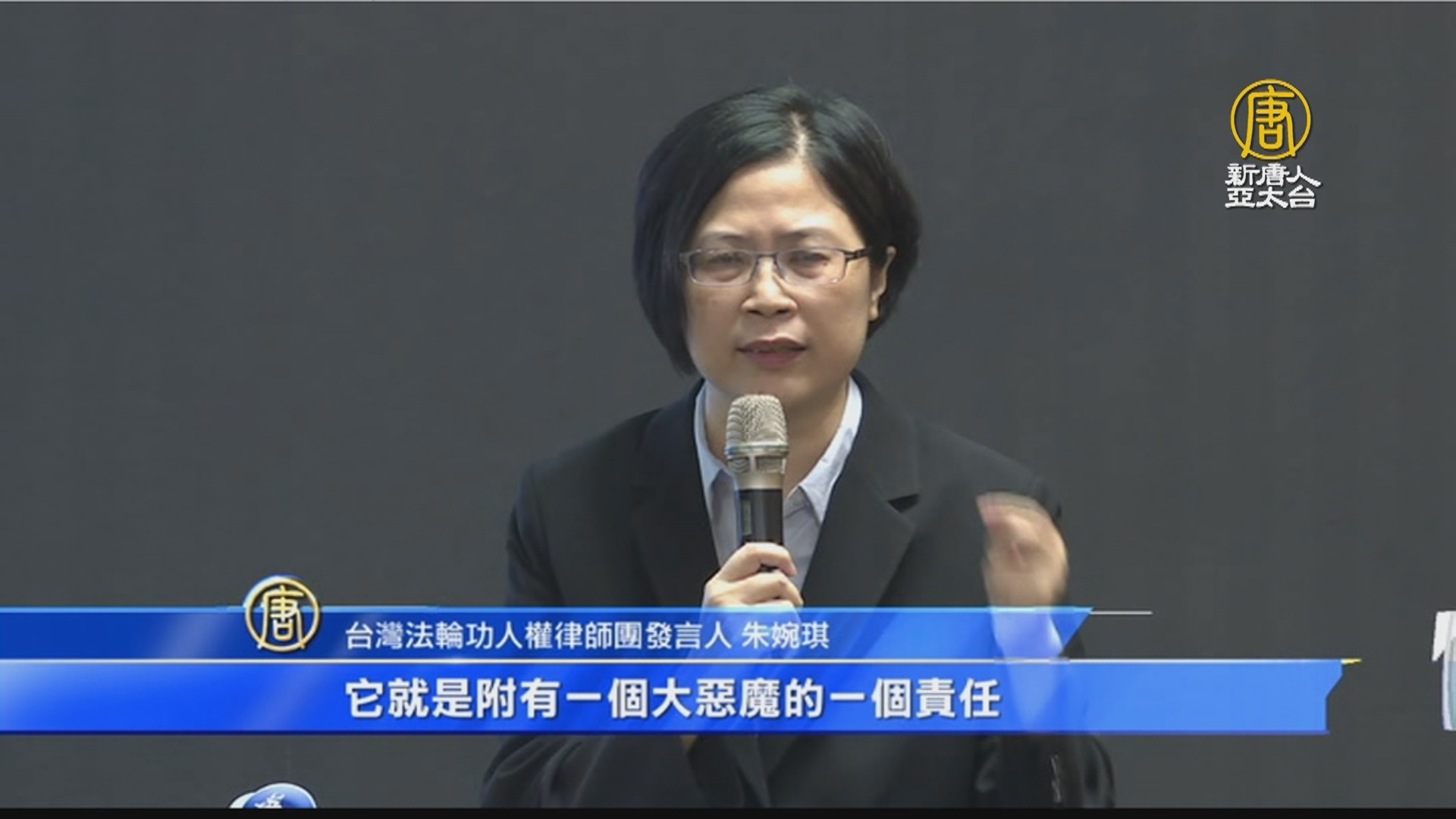 台灣法輪功人權律師團發言人 朱婉琪:「中共從建政以後的話,它就是附有一個大惡魔的一個責任,的一個可怕的使命,就是要滅絕掉,人類的這個善性,人跟神之間的一個連結。」