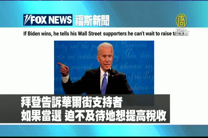 【新唐人亞太台 2020 年 10 月 26 日訊】首先是美國福斯新聞,拜登告訴華爾街支持者,如果當選,迫不及待地想提高稅收。