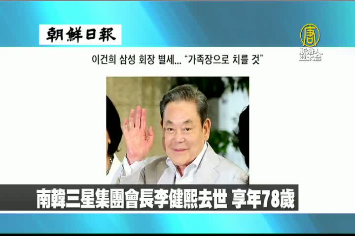 【新唐人亞太台 2020 年 10 月 26 日訊】來看到韓國朝鮮日報報導:南韓企業界巨頭,三星集團會長李健熙去世,享年78歲。