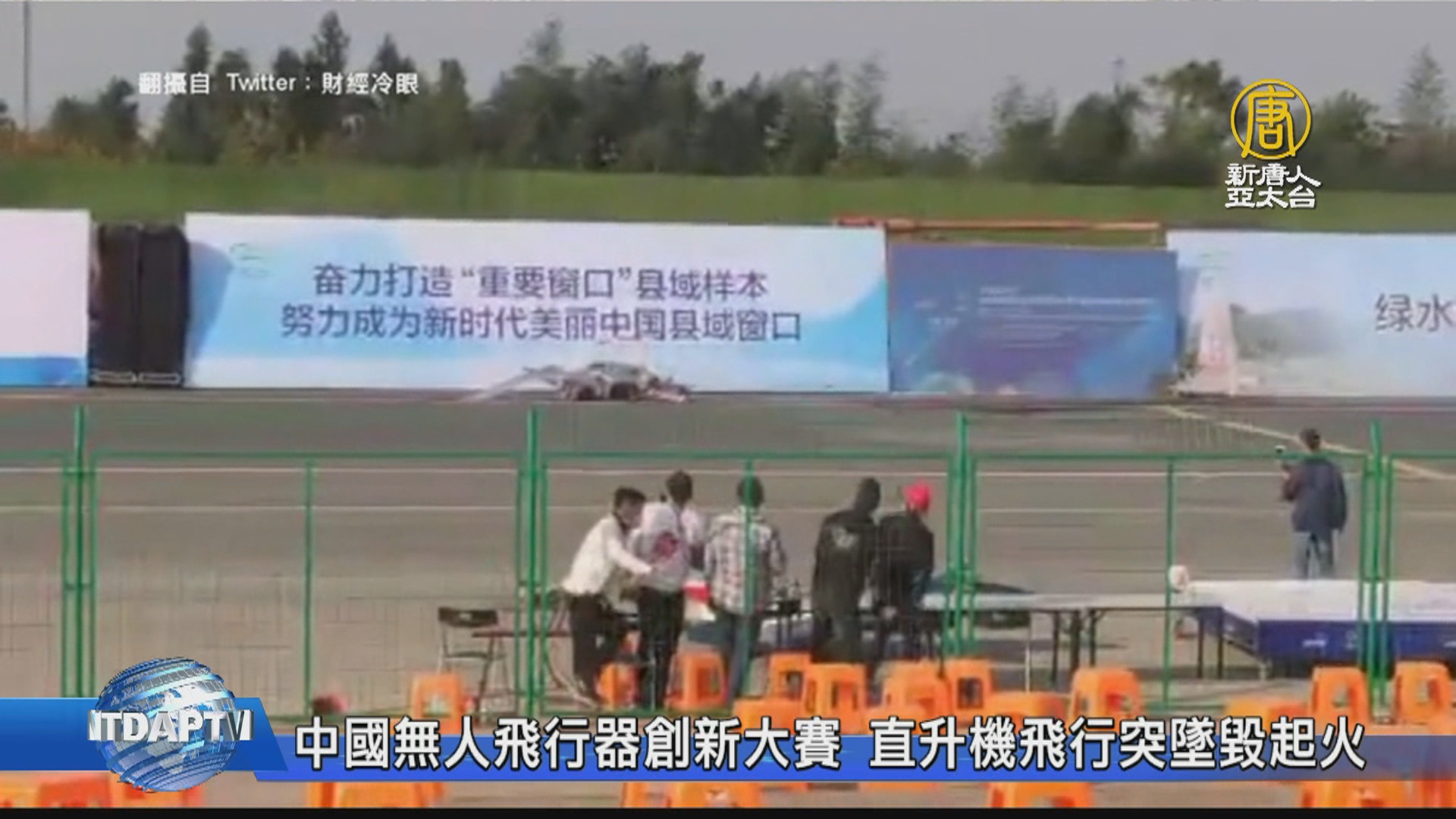 【新唐人亞太台 2020 年 10 月 26 日訊】中國近日舉辦「國際無人飛行器創新大賽」,號稱是「自主研發」的無人直升機,卻在空中展示飛行性能時,突然俯衝墜毀,根據陸媒報導,意外發生在24日,官方研判應為人為操作不當,不過網友們則認為「表演了個墜毀起火?」、「覺得是產品質量(品質)不過關」。