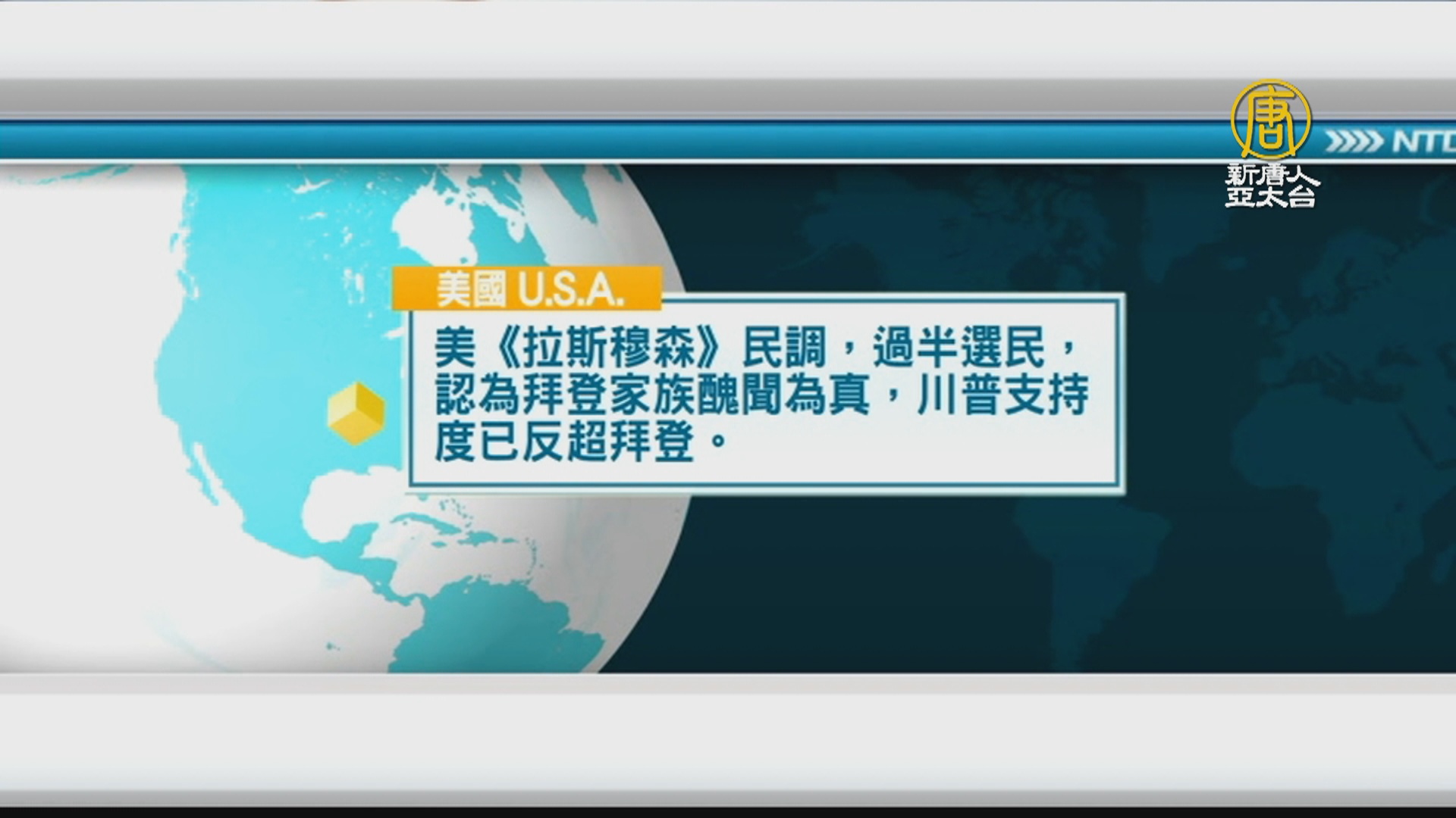 美《拉斯穆森》民調,過半選民,認為拜登家族醜聞為真,川普支持度已反超拜登。
