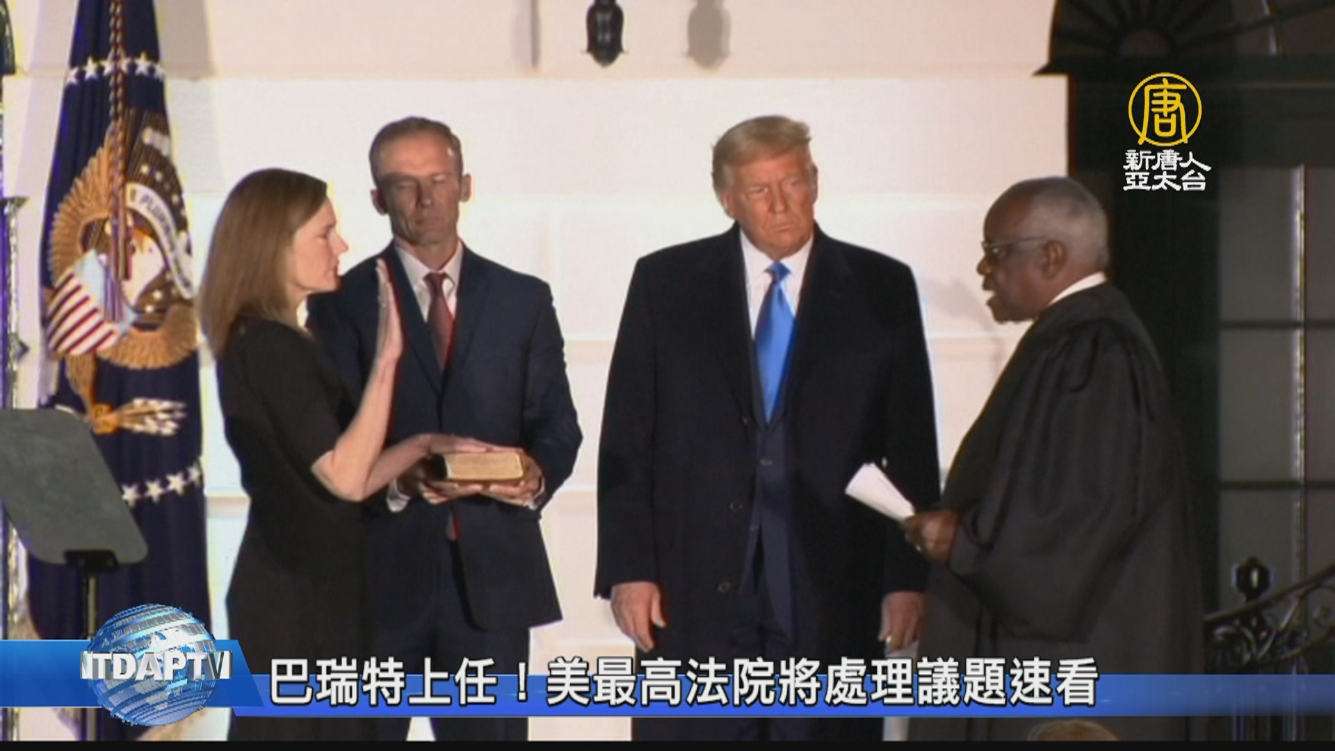 【新唐人亞太台 2020 年 10 月 27 日訊】美國最高法院大法官巴瑞特就職之後,美國最高法院在新的議期,將面對多項議題,包括將處理這次總統大選的爭議選票結果、歐記健保、高科技版權和通俄門等。而保守派在最高法院的優勢,也來到6比3,將左右美國未來幾十年重要議題的走向。