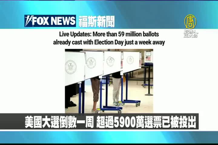 【新唐人亞太台 2020 年 10 月 28 日訊】首先來看到美國福斯新聞報導:美國大選倒數一周,有超過5900萬的選票已被投出,投票率創歷史新高。